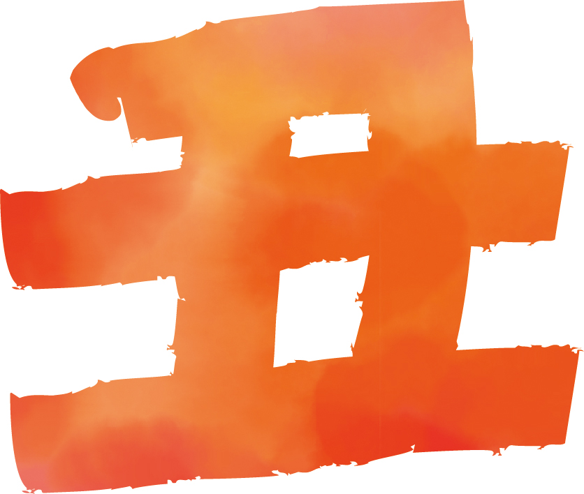 このページのイラストは、水彩のにじみと「うし」と文字をあわせました。