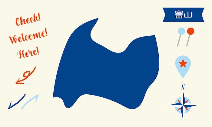 富山の地図 ピンと矢印のセットです。pngをダウンロードすると背景色が透明のファイルをダウンロードできます。