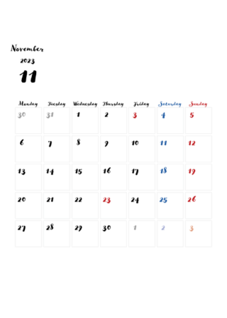 2024年11月のカレンダーを無料でダウンロードできます。