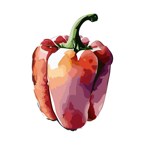 水彩で描かれたパプリカのイラストです。鮮やかな赤とオレンジのグラデーションが特徴的です。ポスターやカード、料理レシピなど様々な用途に適しています。