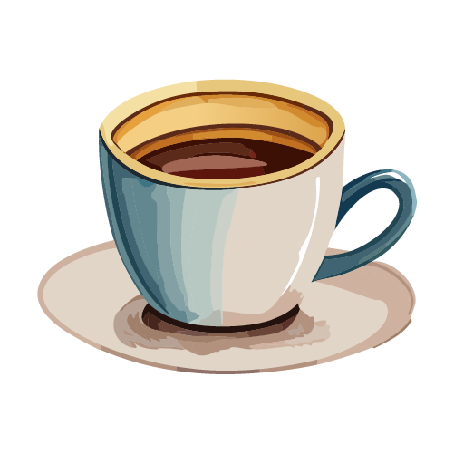 白いカップに注がれたコーヒーのイラストです。リラックスした雰囲気と豊かな香りが伝わる一枚です。カフェメニューやブログ記事などに最適です。