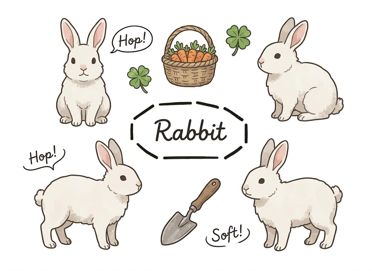 ふわふわ白いウサギとニンジンのイラストセット|無料フリー素材の無料イラストです。商用利用可能なフリー素材です。JPG・PNG形式でダウンロードしてご利用いただけます。