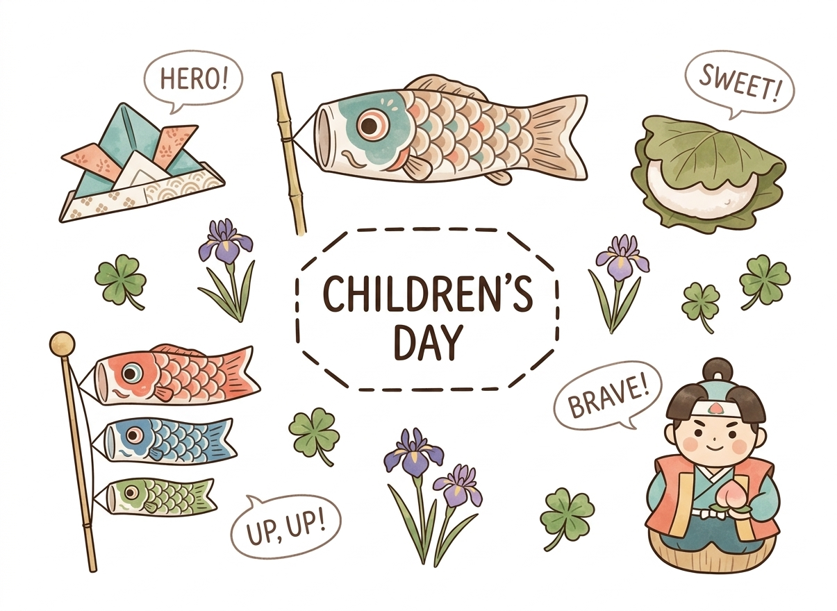 こどもの日・初節句のセットイラスト|無料フリー素材の無料イラストです。商用利用可能なフリー素材です。JPG・PNG形式でダウンロードしてご利用いただけます。